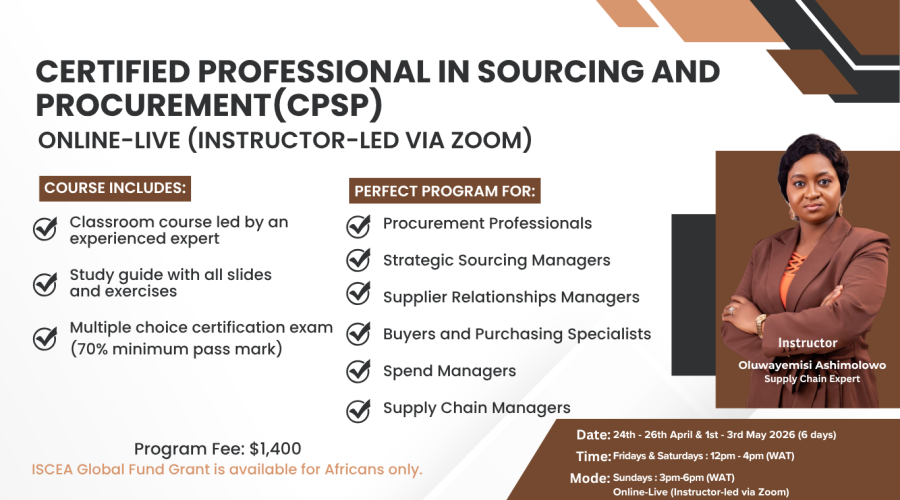 CERTIFIED PROFESSIONAL IN SOURCING AND PROCUREMENT(CPSP)Online-live (Instructor-led via zoom)